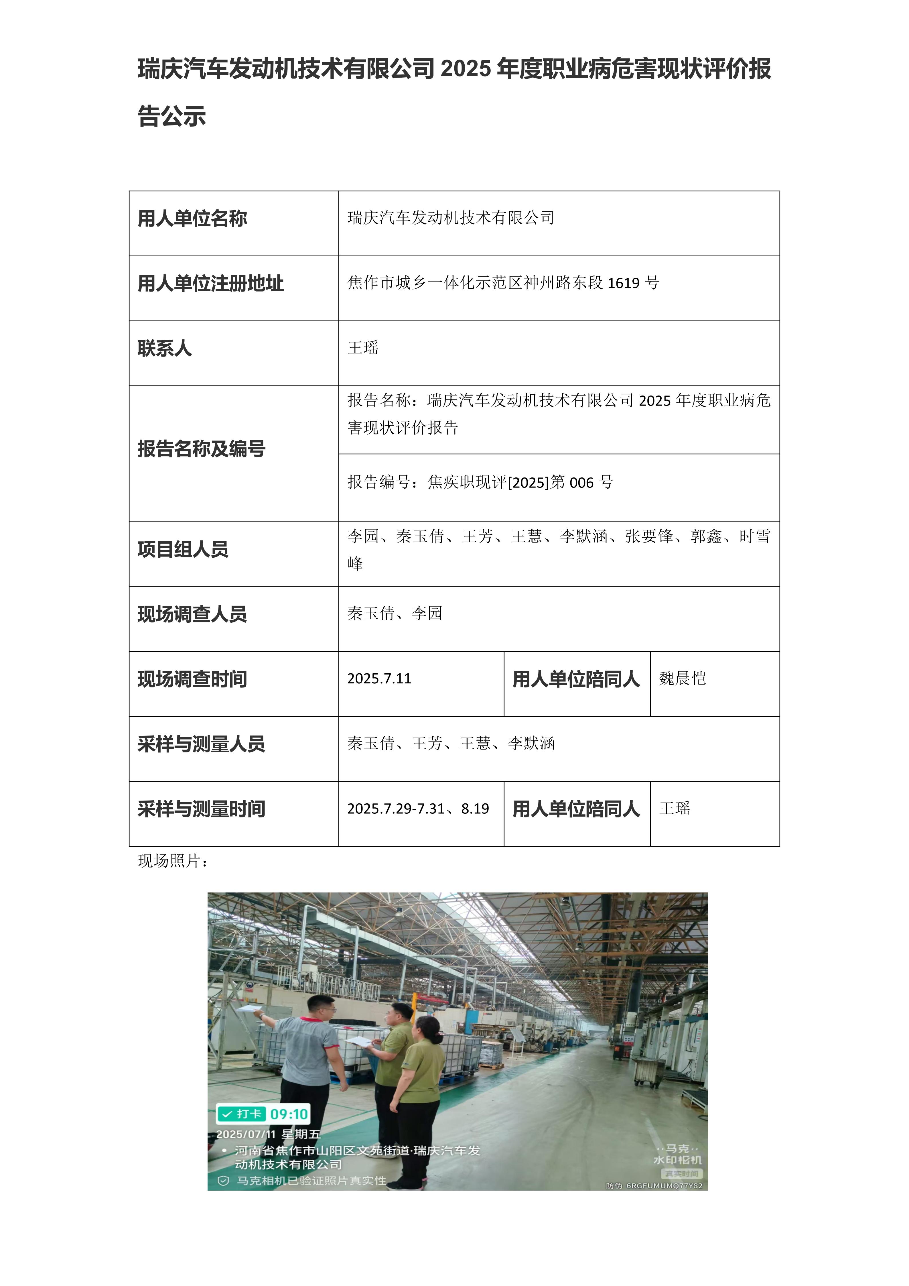 瑞庆汽车发动机技术有限公司现状评价报告公示